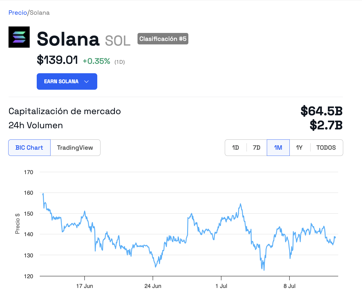 Tras el anuncio, el precio de SOL subió brevemente, al pasar de 140,25 a 145,09 dólares, para situarse en 139,08 dólares el 12 de julio. En tanto, su volumen de trading crece 10,68% diariamente, y su capitalización de mercado actual es de 64,60 mil millones de dólares.