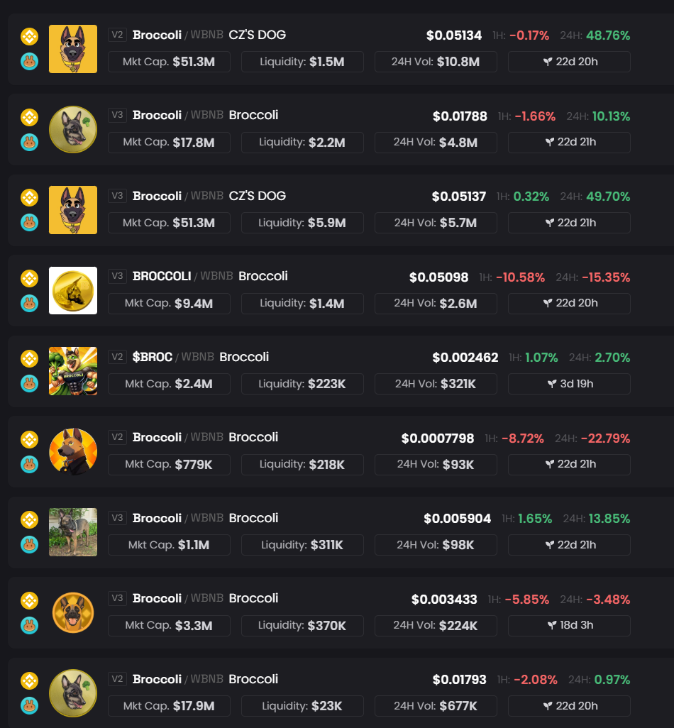 Anteriormente, Changpeng Zhao (CZ) compartió la historia de su perro Broccoli, lo que rápidamente desató una ola de memecoins BROCCOLI en el mercado cripto. Sin embargo, estos proyectos están fragmentados, y muchos han visto caídas bruscas de precio desde su lanzamiento.