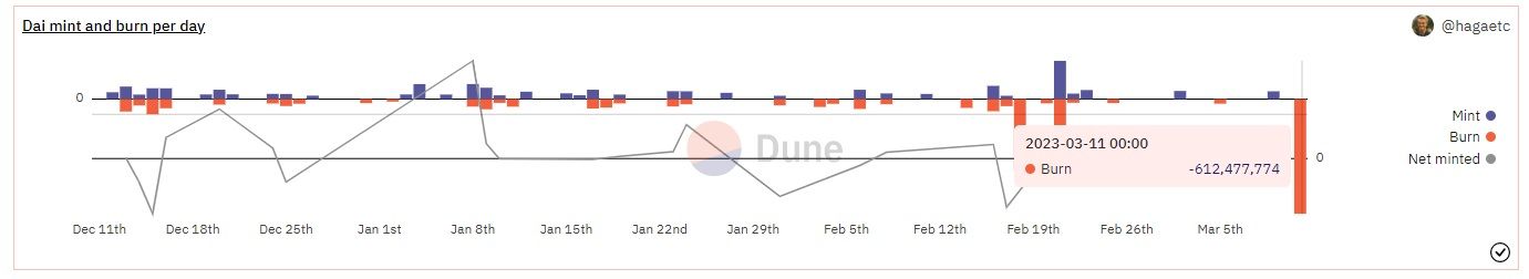 Por otra parte, los datos on-chain revelan que en las últimas 24 horas se han quemado más de 612 millones de dólares en DAI.