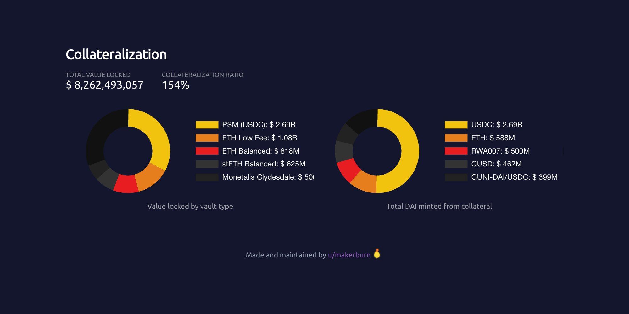 “La colateralización total del sistema es del 154% con un valor de 8,26 mil millones de dólares en colateral que respalda 5,38 mil millones de DAI. No se han desencadenado liquidaciones durante la última semana. El sistema funciona como se esperaba, y siempre lo ha hecho. El código de Maker Protocol es ley para la estabilidad de DAI”.