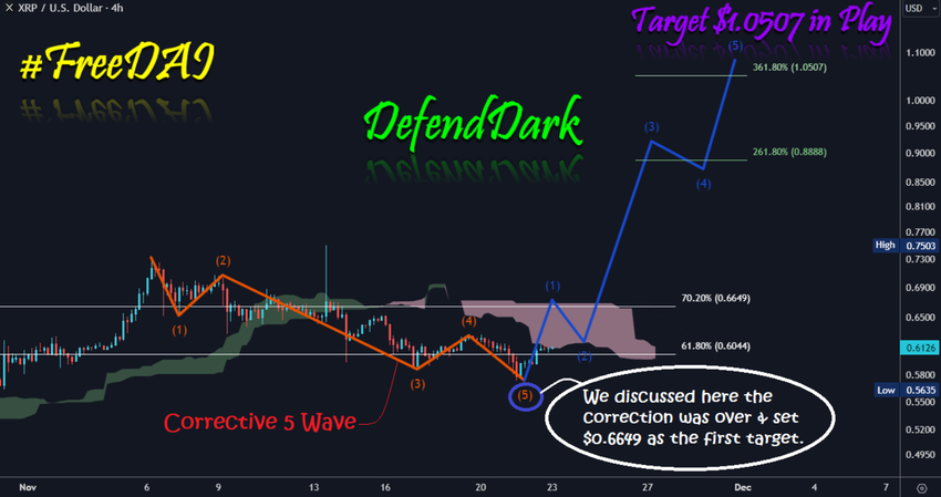 La proyección de @DefenderDark compartida en Twitter para el mes de diciembre se encuentra en sintonía con estas expectativas. Su análisis alcista se basa en la supuesta finalización de la corrección de noviembre, que permitiría alcanzar los 90 centavos de dólar el primero de diciembre.