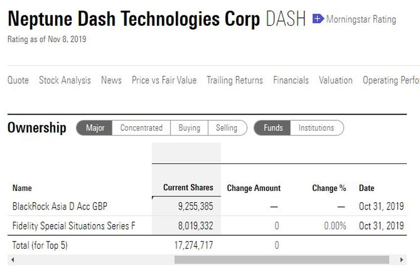 De acuerdo con información publicada por el portal de negocios Morningstar la compañía Neptune Dash Technologies Corp. cuenta con el respaldo financiero de Fidelity y BlackRock… o al menos de los inversionistas en fondos creados por estos monstruos de las finanzas.