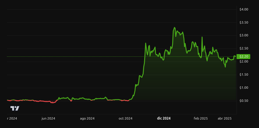 SponsoredDesde entonces, la altcoin ha sufrido una corrección importante, para cotizar actualmente en 2.20 dólares, según datos de BeInCrypto.