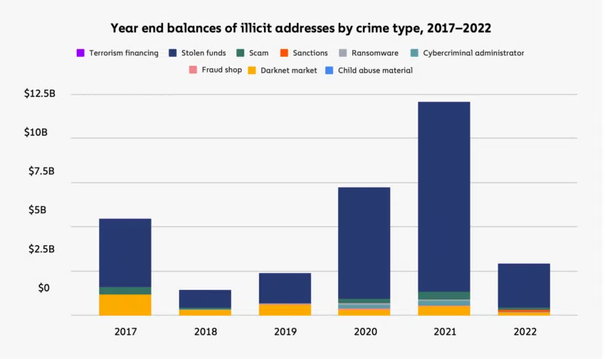 Debido a las grandes incautaciones por parte de las fuerzas del orden, los saldos de fin de año de las direcciones ilícitas también disminuyeron en 2022, según un informe de Chainalysis.