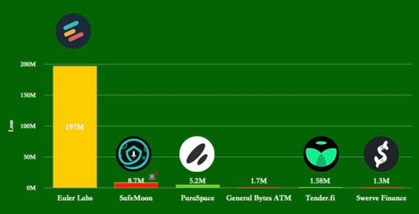 En marzo, 26 proyectos DeFi fueron atacados con una pérdida total de 211 millones de dólares, según Peckshield. El hack de Euler Finance del 13 de marzo fue responsable de más del 90% de las pérdidas registradas.