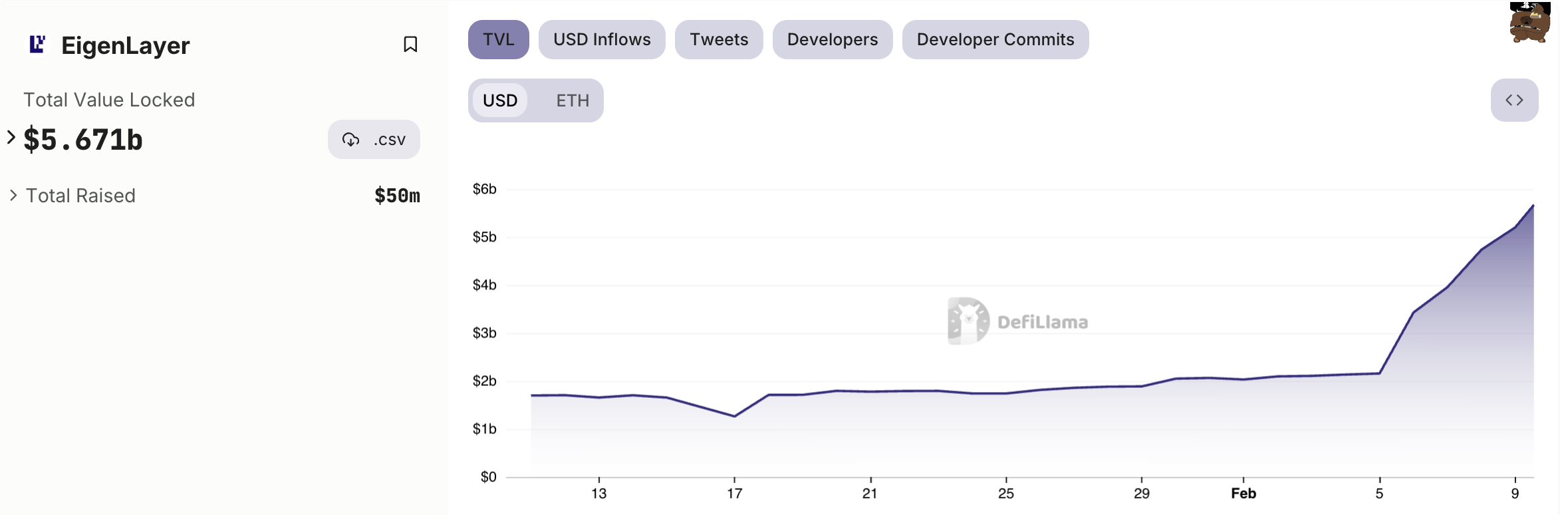 Este aumento de TVL está estrechamente relacionado con la reciente decisión estratégica de EigenLayer de reanudar temporalmente el restaking de tokens y eliminar los límites de TVL para cada token.