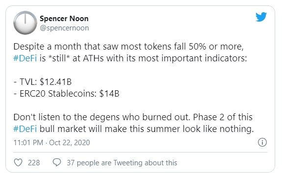 Agregó que los agricultores DeFi pueden haber vuelto a Bitcoin después de haber obtenido ganancias importantes durante el tercer trimestre.