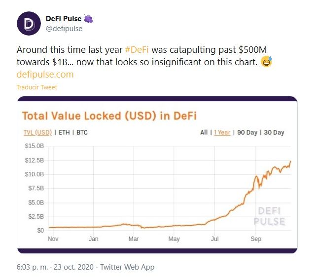 El momentum del mercado de criptomonedas se ha extendido nuevamente a DeFi después de una corrección de seis semanas para la mayoría de los tokens relacionados con la industria. La cifra de garantía de TVL ha alcanzado un récord de 12,3 mil millones de dólares según DeFi Pulse, y este hito significa que ha aumentado en casi un 2000% desde esta vez el año pasado.