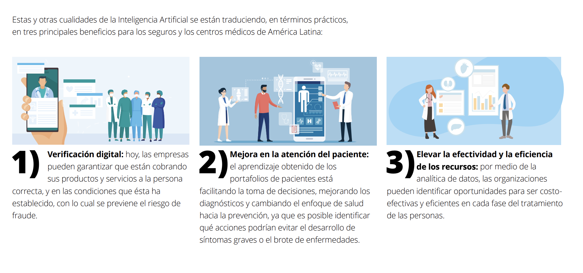 Con la IA, cada día se crean 2,5 quintillones de bytes de información de las personas, las cuales son desaprovechadas en Latinoamérica, ya que los centros de salud en la región no administran correctamente sus datos, por lo que no podrían anticipar u optimizar sus gastos.