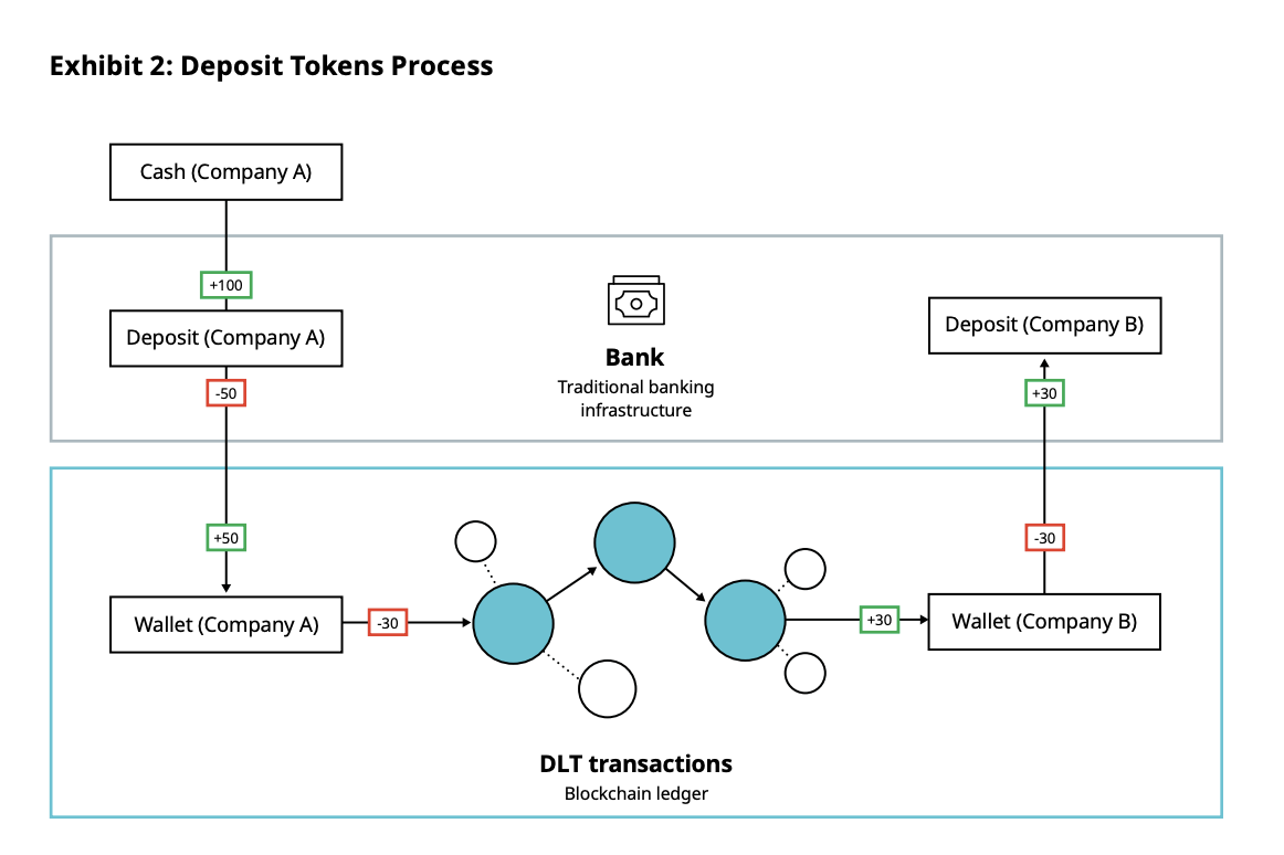 Los deposit tokens defienden la tokenización de los depósitos, en particular los tokens de depósito nativos (tokens transferibles, que representa el depósito recogidos en blockchain que mantiene el libro de registro on-chain).