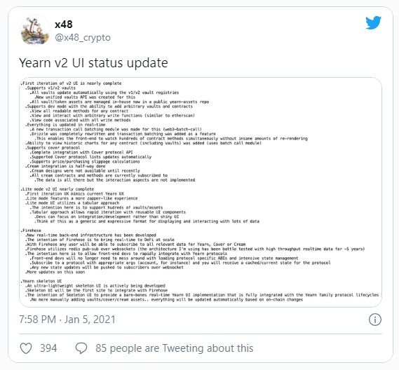 Un desarrollador de la plataforma Yearn Finance DeFi ha publicado una actualización sobre el estado de desarrollo de su tan esperada segunda iteración.
