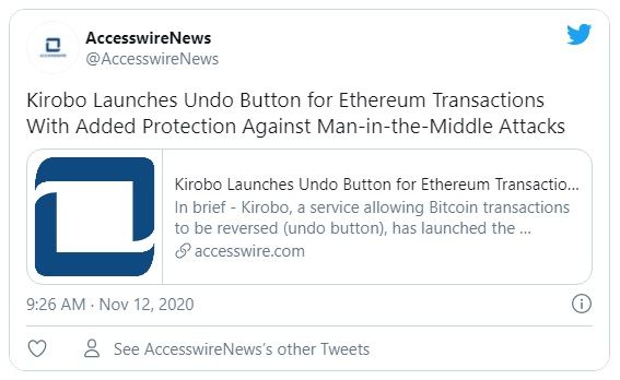La startup israelí Kirobo ha anunciado el lanzamiento de un botón de “deshacer transacción” para las transacciones de la blockchain Ethereum (ETH).
