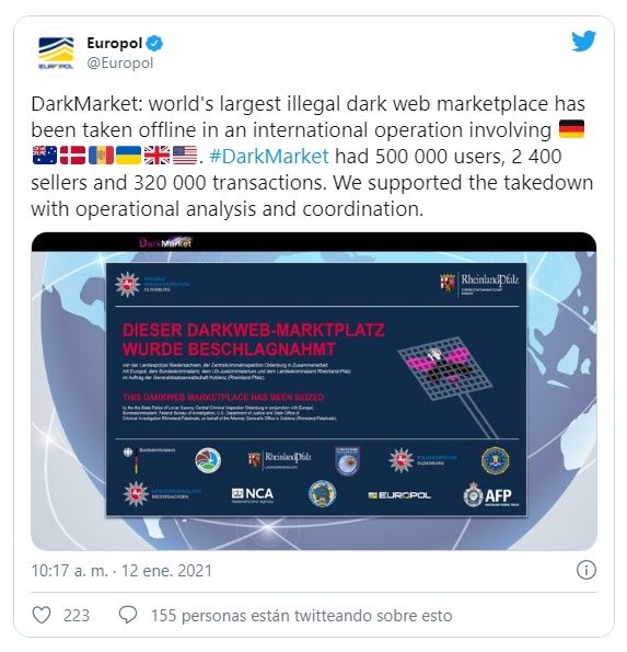 Según las declaraciones, en el DarkMarket (que contaba con más de 2.400 proveedores al momento de su cierre), se habían efectuado al menos “320.000 transacciones” pagadas en su mayoría mediante criptomonedas como Bitcoin y Monero por un total aproximado de 140 millones de euros (más de 170 millones de dólares).