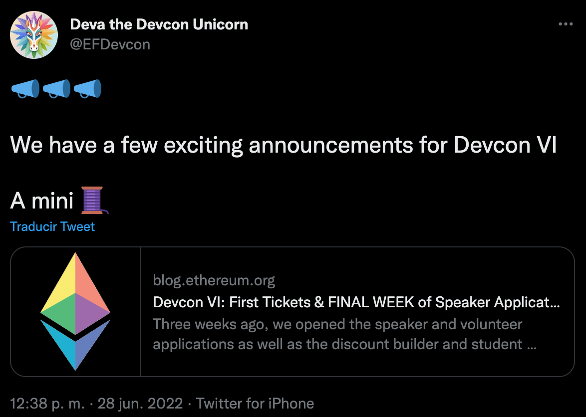 En palabras de sus creadores, la semana de Devcon es más que un evento, es un conjunto diverso de reuniones, subconferencias y otros espacios que resaltan lo mejor de este ecosistema.
