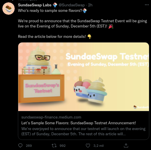 A través de un comunicado publicado en la tarde del miércoles 1 de diciembre, el equipo de SundaeSwap señaló: