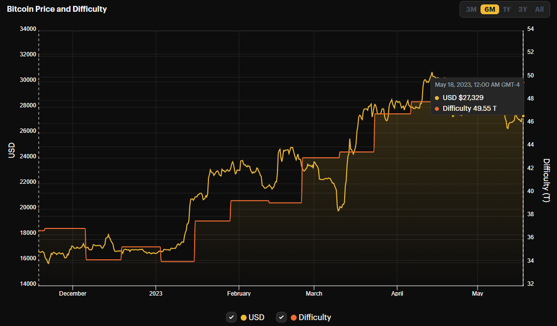 SponsoredCon este nuevo máximo, la dificultad de la red Bitcoin sigue en constante aumento en lo que va del 2023. Ya ha superado su máximo anterior 5 veces, en lo que va de año. El último máximo fue el 24 de abril de este año.