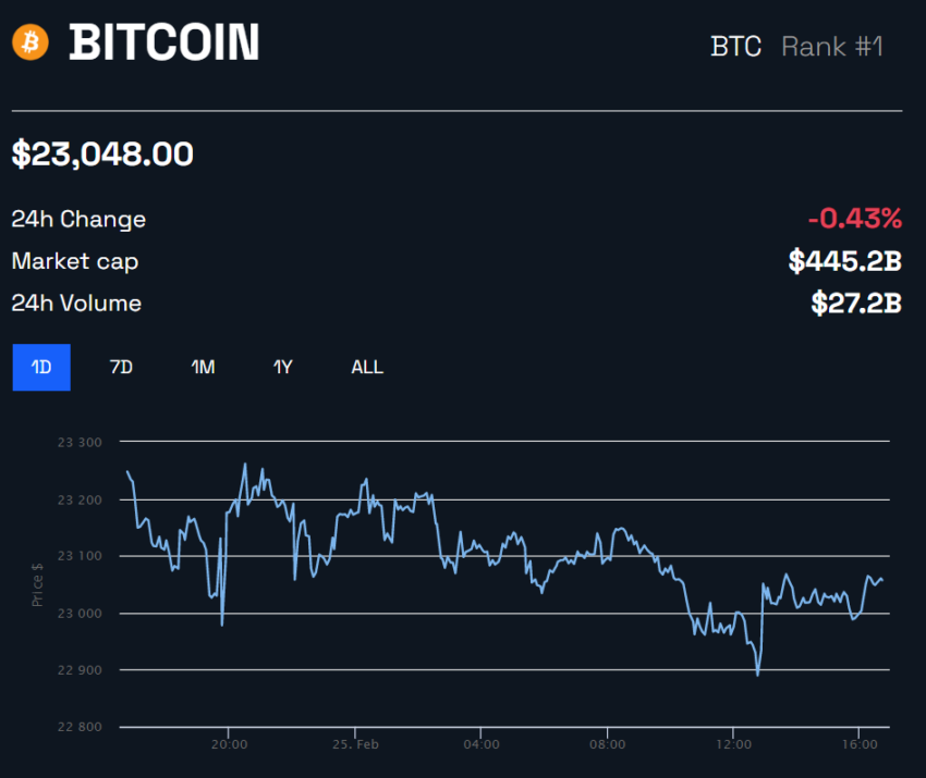 BTC se mantiene sobre los 23,000 dólares