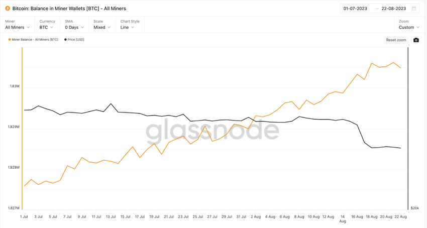 Mientras que el precio de BTC está en sus mínimos mensuales. ¿Esto indica que los mineros están acumulando más Bitcoin en lugar de gastarlo?