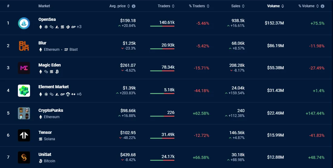 Notablemente, tanto OpenSea como Magic Eden están liderando las clasificaciones de marketplaces de NFT, clasificándose consistentemente entre los tres primeros según las métricas de recuento de traders.