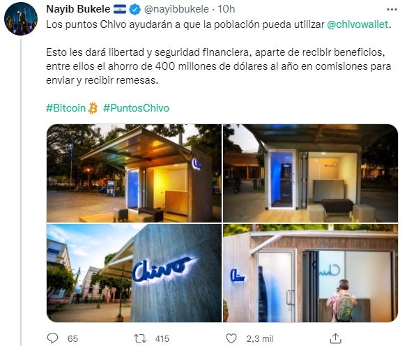 Sponsored“Tenemos a varios equipos en el territorio para mostrarle a la población como usar la Chivo Wallet. Hemos desarrollado una aplicación amigable para que todos los salvadoreños podamos aprender a utilizar esta criptomoneda”.