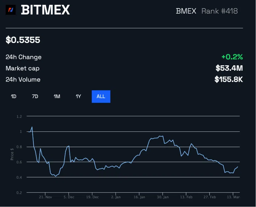 No hace falta decir que el token fue testigo de un comienzo de montaña rusa. En los últimos 12 meses, BMEX perdió alrededor del 78% de su valor. Pero empezó a subir en 2023 y aumentó 16% en los primeros 45 días del año. En la actualidad, el token clasificado en el puesto 418 se cotiza alrededor de la marca de 0,53 dólares.