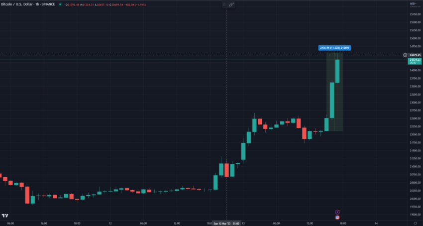 En el momento de la publicación, Bitcoin había subido alrededor de 16,7% de 20,585 dólares a 24,334 dólares en el día. ETH ha subido más del 14% de 1,473 dólares a alrededor de 1,650 dólares, mientras que Cardano ha subido 15% a $0,349049.