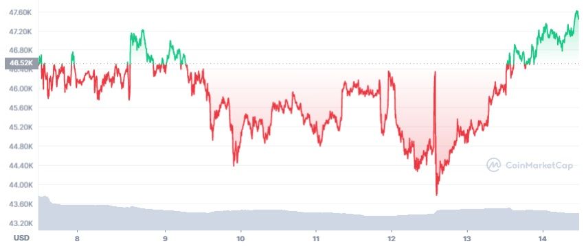 Al momento de la publicación, Bitcoin cotiza a 47,419.04 dólares, con un aumento del 3.11% en las últimas 24 horas, según los datos de CoinMarketCap.