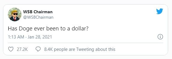 Los miembros del subreddit crearon varias publicaciones durante este período, alentando a los traders a comprar DOGE después de que la Bolsa de Valores de Nueva York (NYSE) detuviera las operaciones de GameStop (GME).