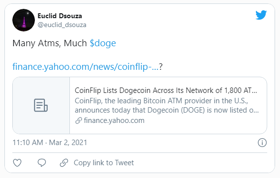 El operador líder de cajeros automáticos de criptomonedas, CoinFlip, anunció hoy que la criptomoneda de temática canina Dogecoin (DOGE) figura en su red de 1.800 ATM en los Estados Unidos.