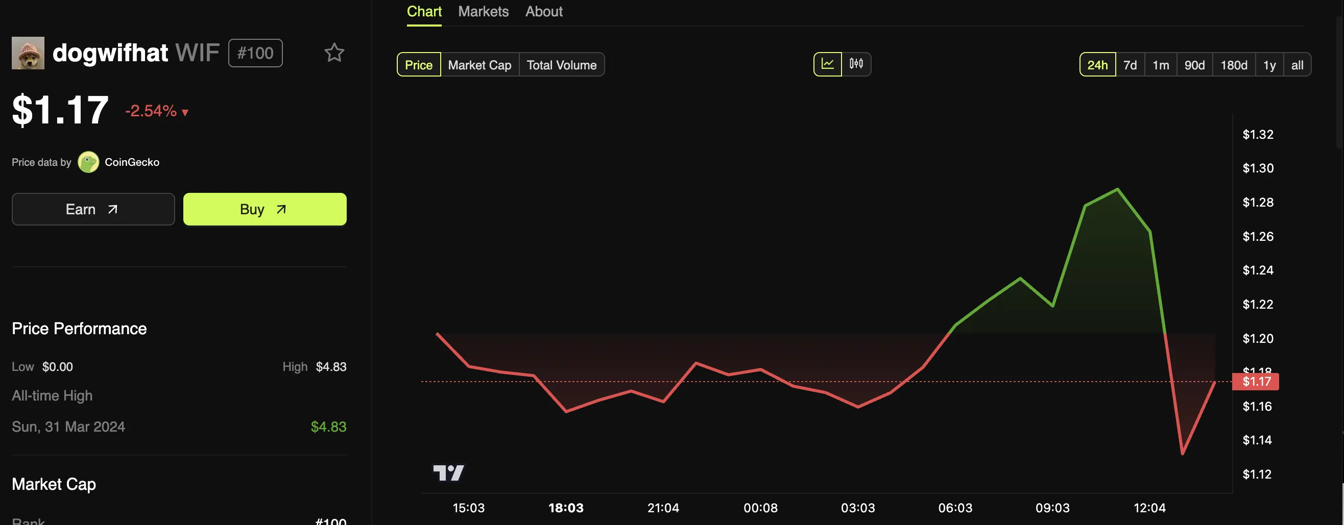 Ahora que el Sphere ha acusado a los desarrolladores de WIF de desinformación, estas fluctuaciones de precio se convirtieron en una caída inmediata del 10%. El equipo de la memecoin, por su parte, ha negado fervientemente cualquier mala conducta.