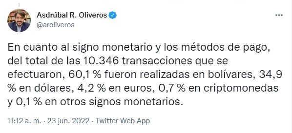Hay que recordar que esta reforma hecha en marzo de este 2022 hizo que cualquier transacción hecha en divisas tuviese que pagar un impuesto de mínimo 3%, haciendo que fuese más económico utilizar al bolívar como método de pago.