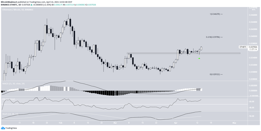 Se espera que ETH/BTC aumente hacia ₿0,046.