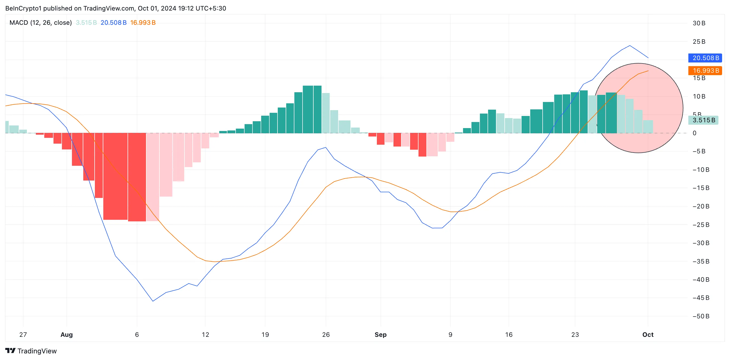 SponsoredEsto es impulsado por una desaceleración en la actividad general del mercado mientras los traders esperan un disparador para encender el muy anticipado “Uptober“. Por ejemplo, el tamaño de las barras del histograma en el indicador de Convergencia/Divergencia de Media Móvil (MACD) de TOTAL2 ha disminuido gradualmente en los últimos días.