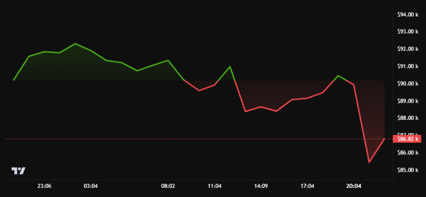 Desde ayer, el precio de Bitcoin se había mantenido estable sobre la marca de los 90,000 dólares. Sin embargo, tras el anuncio, la criptomoneda líder cayó por debajo de los 85,000 dólares. Al momento de la publicación, Bitcoin se ha recuperado levemente y cotiza a 86,817 dólares, según datos de BeInCrypto.