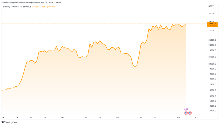 En respuesta, Bitcoin (BTC) ha registrado ganancias en las últimas 24 horas. La principal criptomoneda por capitalización de mercado superó el nivel de 28,500 dólares, ganando un 2% el miércoles.