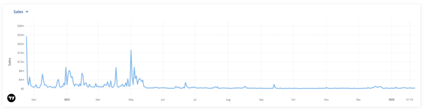 Desde las quiebras de entidades cripto como Three Arrows Capital, Celsius y recientemente FTX, las ventas diarias de la colección de imágenes de perfil han luchado por superar los 3 millones de dólares. Aún así, la utilidad principal parece ser hacia donde se dirige la industria. Varios pronósticos para 2023 han sugerido que la utilidad impulsará la adopción de NFT a medida que la moda especulativa de NFT a partir de 2021 desaparezca.