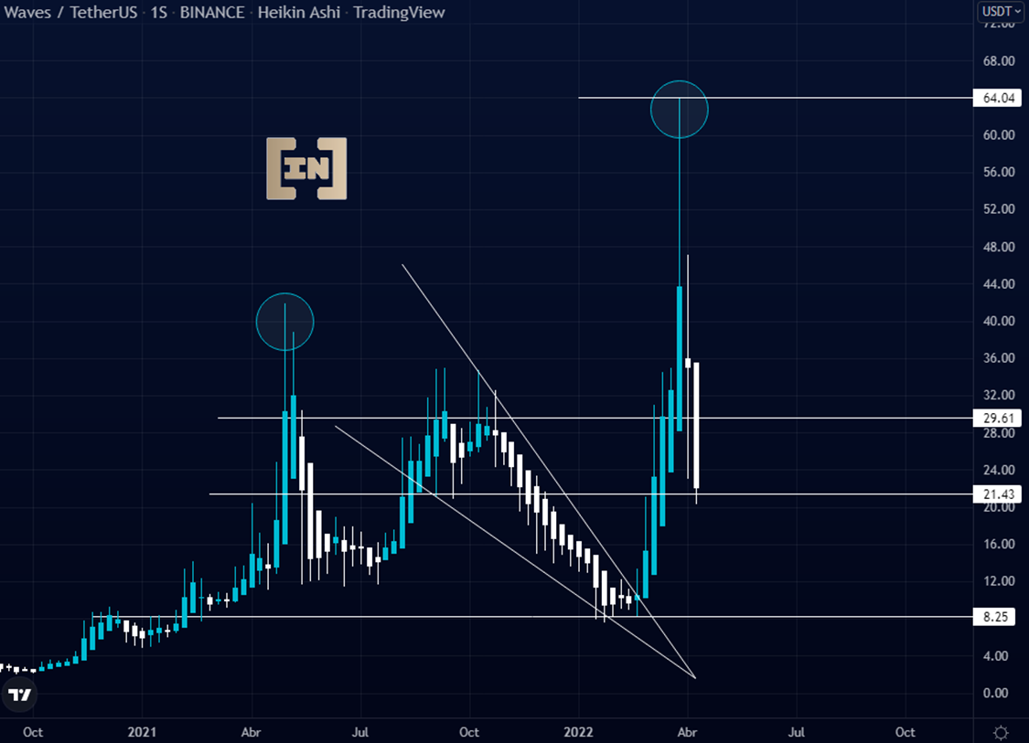 En cuanto a Waves de momento descansa sobre el área de los 21.43 dólares. Ahora dependerá de toda su comunidad para poder mantenerse en una zona estable y de consolidación.