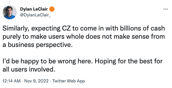 Esperar que CZ venga con miles de millones de dinero en efectivo sólo para saldar las deudas de los usuarios no tiene sentido desde una perspectiva empresarial.