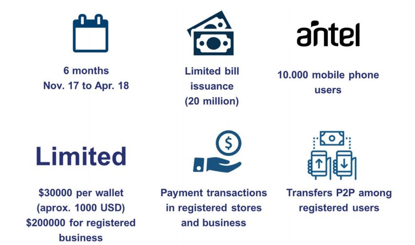 Para ser elegible para el piloto de moneda digital e-Peso, los usuarios necesitarían ser suscriptores activos de la red estatal Antel. Las autoridades aprobaron un total de 10,000 usuarios para crear wallets por orden de llegada. La empresa de pagos de terceros, RedPagos, luego cargaría tokens en estos monederos.