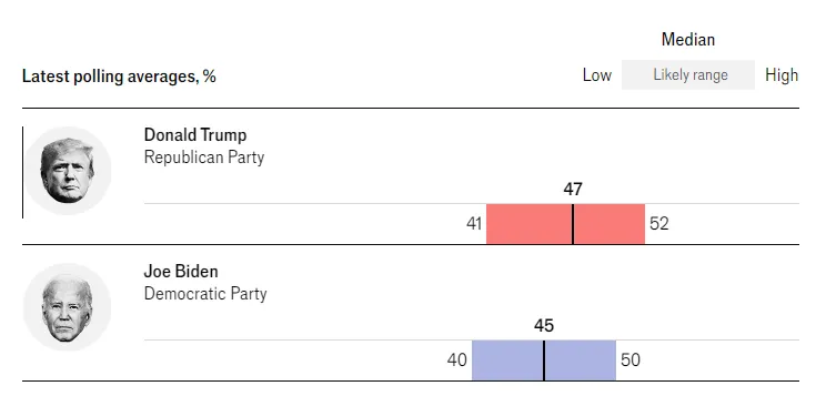 Las elecciones presidenciales estadounidenses tendrán lugar el 5 de noviembre. En el momento de su publicación, las encuestas de diferentes fuentes muestran a Trump ligeramente por delante de Biden por entre dos y cinco puntos.