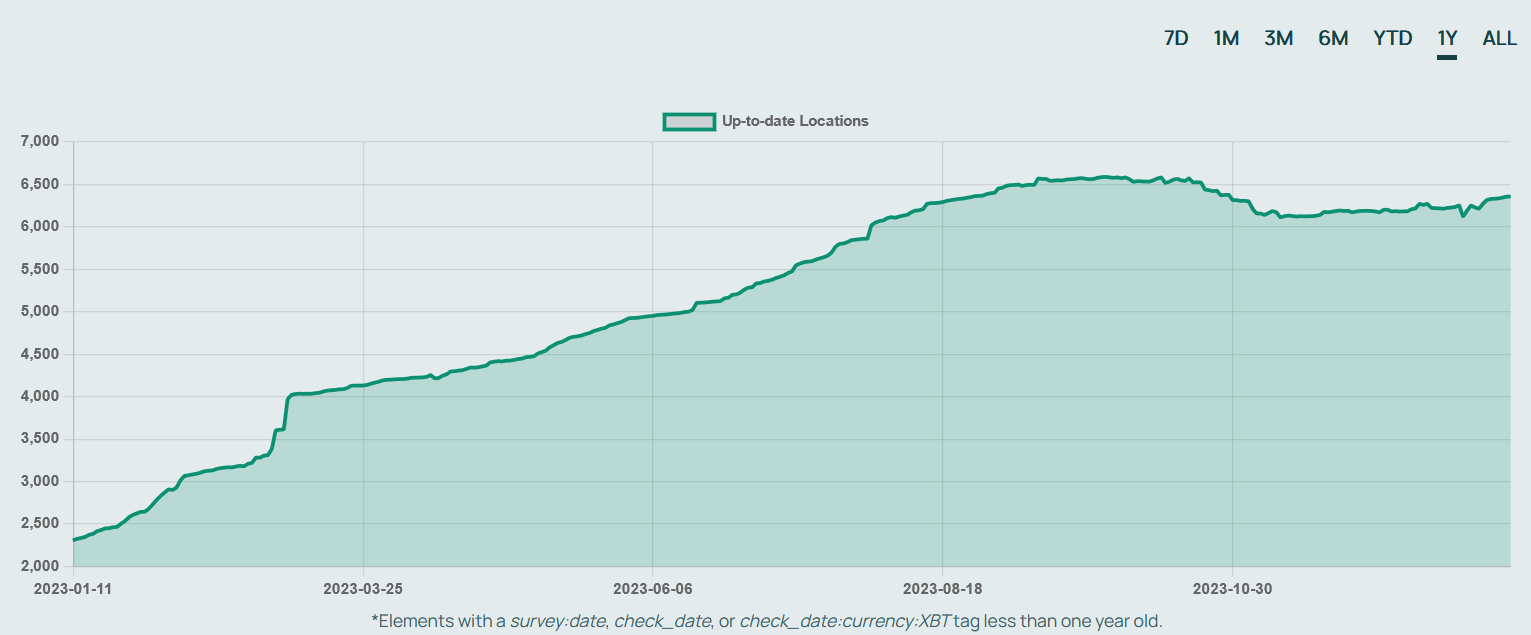 Es difícil negar que BTC tiene una tendencia creciente como medio de pago. Esto hasta el punto que los datos de BTC Map a nivel global muestran un aumento del 177% en el número de restaurantes, bares, tiendas y proveedores de servicios que aceptan Bitcoin de enero de 2023 a enero de 2024.