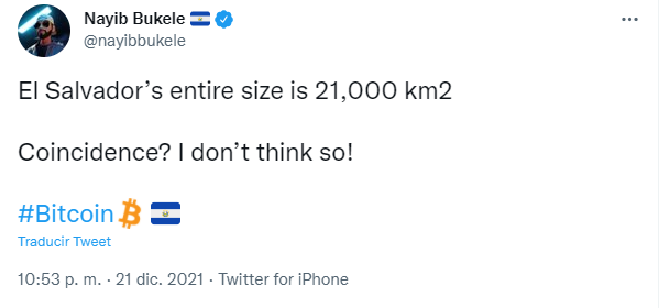 Acerca de la simbólica compra, el presidente Bukele también comentó en otro tweet: