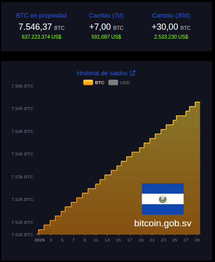 El mensaje refleja el optimismo del sector y anticipa mayor interés multinacional en El Salvador como destino para activos digitales. Al momento de la publicación, El Salvador acumula 7,546 BTC valorados en cerca de 637,2 millones de dólares.