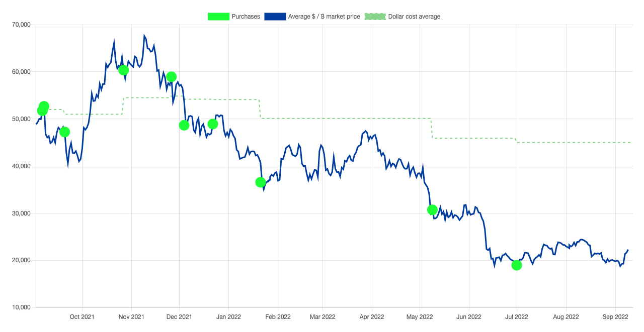 Según datos recopilados de las compras de bitcoin anunciadas por el estado centroamericano el portafolio de bitcoin del El Salvador se ha reducido más de un 50%. Es de costumbre que Bukele anuncie mediante Twitter que cantidad de BTC ha comprado el país como también el rango del precio al que se compró en dólares estadounidenses.