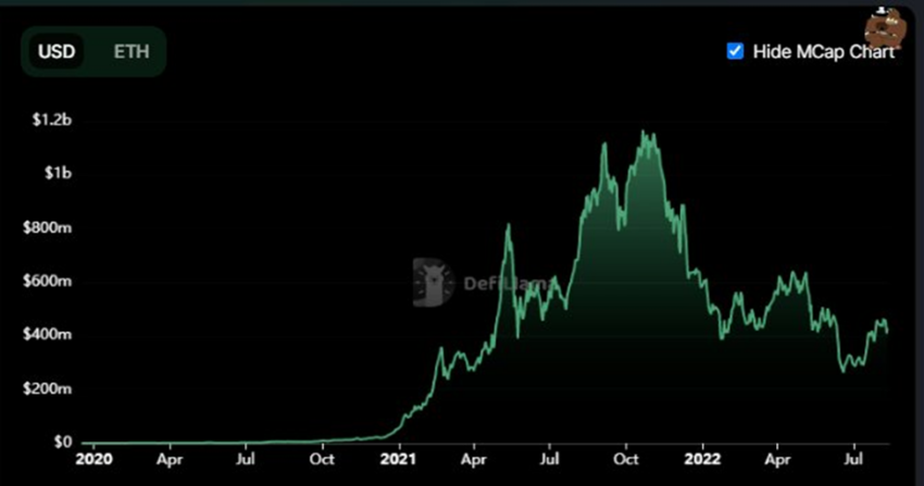 Tornado Cash es una plataforma que se utiliza para ofuscar las transferencias de criptoactivos. El activo TORN nativo de la plataforma aumentó un 49% en el valor total bloqueado en julio. El 1 de julio tenía un TVL de alrededor de 297,13 millones de dólares, y ascendió a 445,37 millones de dólares el 31 de julio.