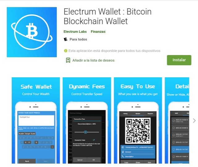 Al realizar una búsqueda en Google Play se puede constatar la existencia de una app cuyo nombre e interfaz se asemeja mucho a la de Electrum Bitcoin Wallet, algo que debe ser una señal de alerta para todos los usuarios.