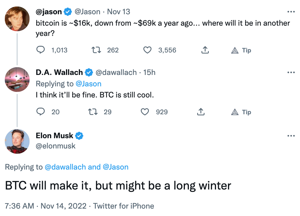 Elon Musk ha vuelto a Twitter para hablar sobre Bitcoin y su futuro a largo plazo en relación a la debacle de la industria cripto en el cripto invierno. ¿Sobrevivirá Bitcoin el cripto invierno?