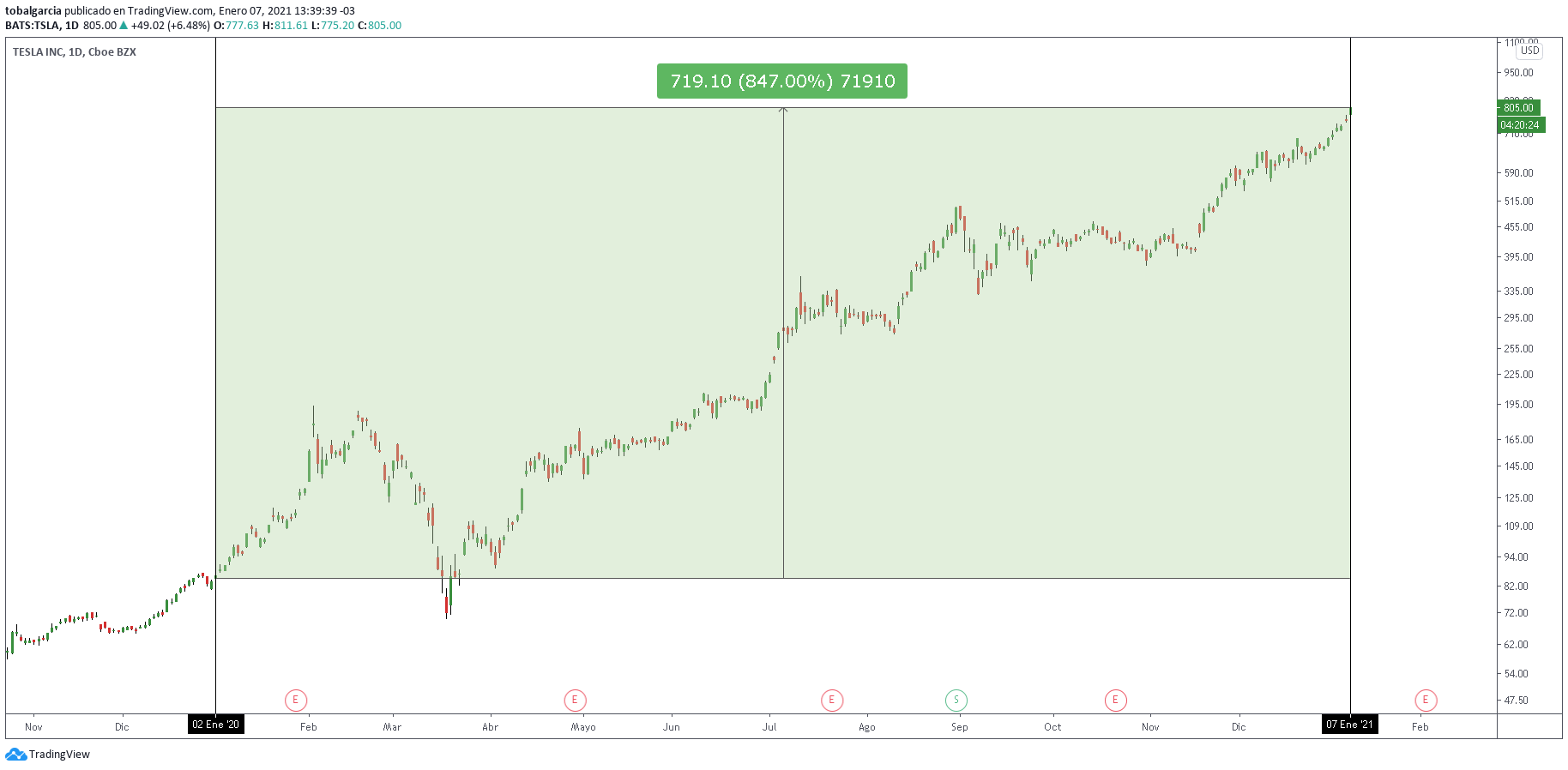 SponsoredLas acciones de Tesla (TSLA) desde el inicio del año 2020 hasta el día de hoy se han revalorizado un +840%, haciendo que el patrimonio de Elon Musk pasara de $27 mil millones de dólares hasta multiplicarse por 7 veces en poco más de 1 año. Elon es ahora más rico que Jeff Bezos, el director de Amazon pasó al puesto número 2 de la lista de más adinerados.