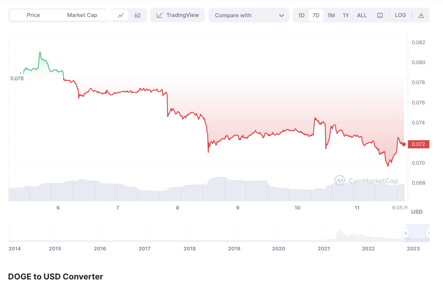 No obstante, el anuncio de la nueva CEO en Twitter no ayudó ni generó una racha alcista a DOGE, ya que en la última semana, el precio de la criptomoneda meme pasó de 0,08078 a 0,072 dólares.