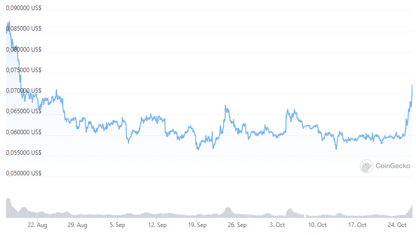 Sin embargo, quien ha liderado el rally ha sido Dogecoin. DOGE, la popular criptomoneda meme, se disparó un 15% a lo largo de la jornada y cotiza actualmente en 0.072 dólares, un rango de precios que no experimentaba desde finales del mes de agosto.